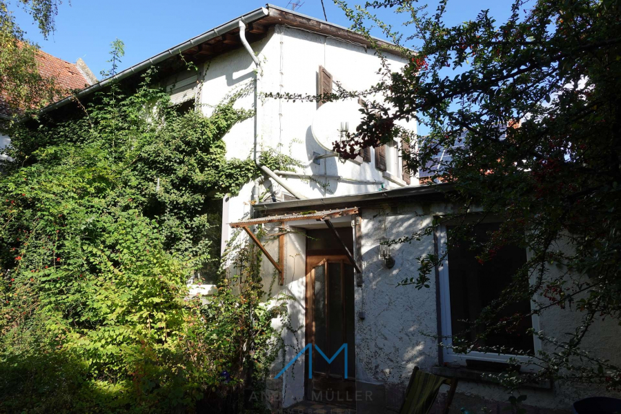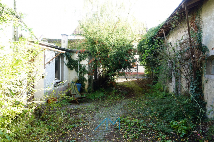 Das aktuell noch bebaute Grundstück umfasst ein Wohngebäude mit Anbauten, die durch Regenwasserschäden teilweise stark beschädigt wurden. Besonders durch ein undichtes Dach sind größere Teile des Gebäudes nicht mehr bewohnbar. Dennoch bietet das Erdgeschoss noch bewohnbare Räume, die von handwerklich begabten Menschen eventuell saniert werden könnten.
