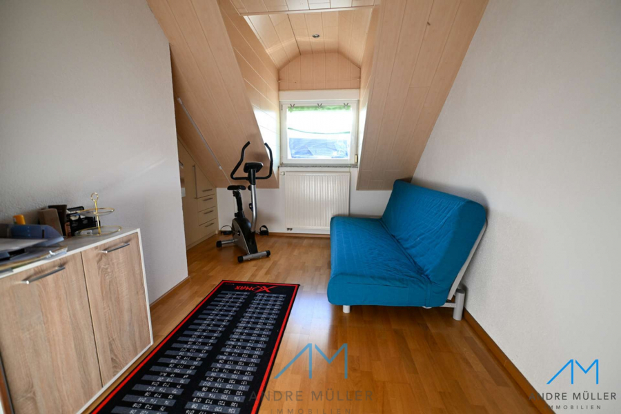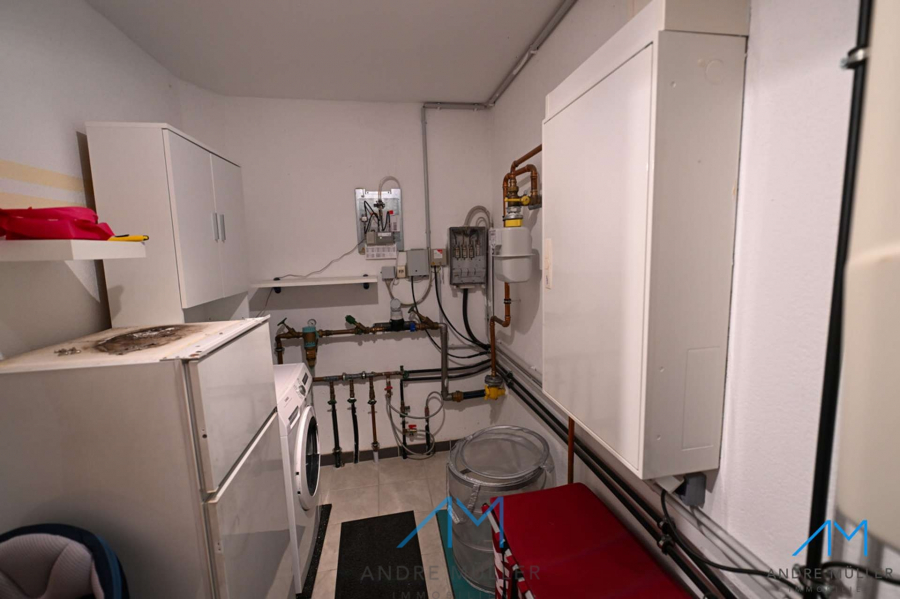 Der voll unterkellerte Bereich bietet vielfältige Nutzungsmöglichkeiten. Hier befindet sich nicht nur eine Vorrichtung für einen Saunaanschluss mit Starkstrom, sondern auch ein Gästezimmer oder Büro mit eigenem Badezimmer. Ein wahrer Luxus für Ihre Gäste oder als Homeoffice.