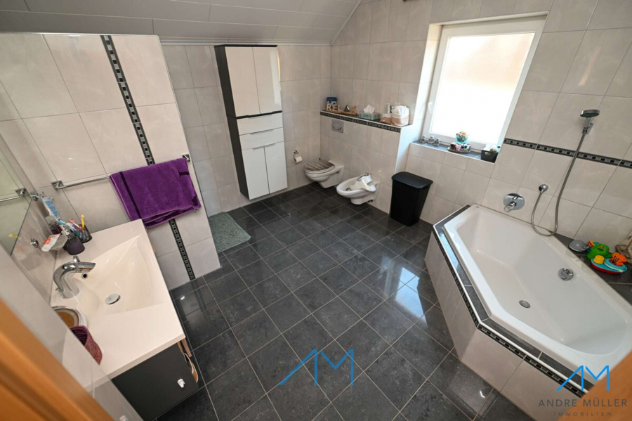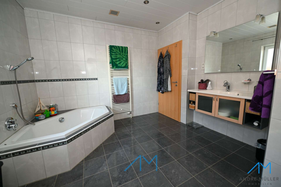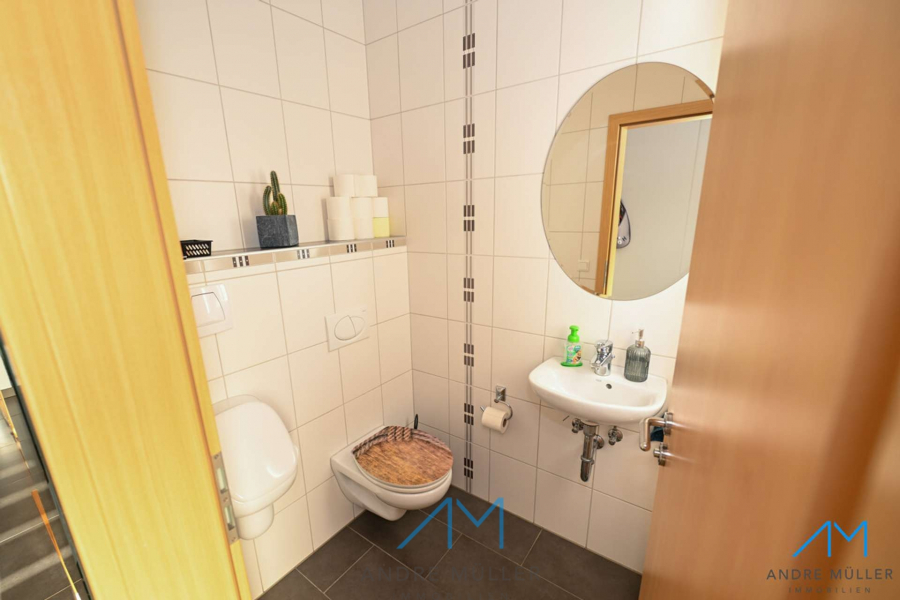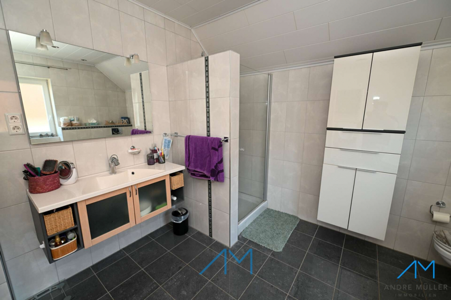 Ein großes Badezimmer im oberen Stockwerk und ein Gäste-WC im Erdgeschoss sorgen für optimalen Wohnkomfort.