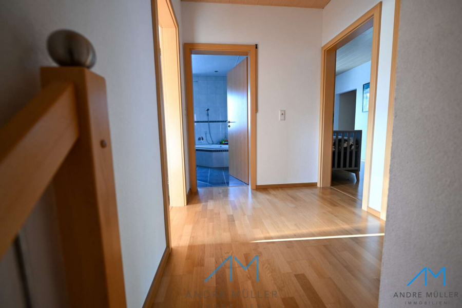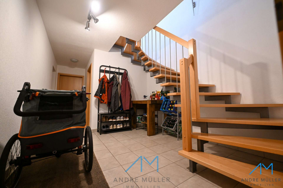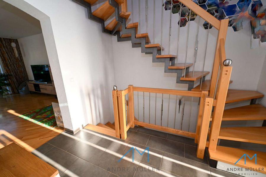 Beim Betreten des Hauses fallen sofort die stilvollen Einbauschränke in der Garderobe sowie in den oberen Zimmern ins Auge – praktisch und ästhetisch zugleich. Der helle und geräumige Wohnbereich lädt zum Verweilen ein und ist perfekt für gesellige Stunden mit Familie und Freunden geeignet.
