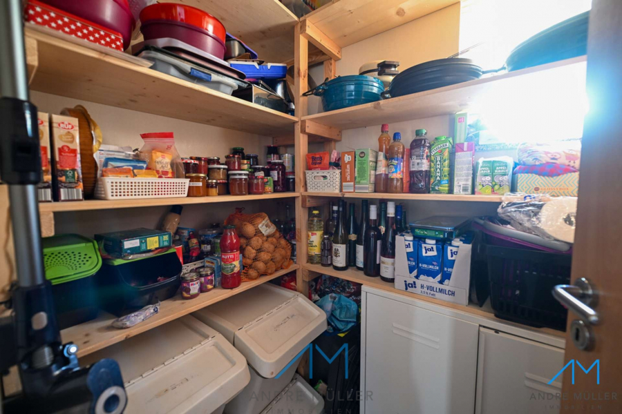 Für ausreichend Stauraum ist gesorgt – eine praktische Speisekammer und ein großzügiger Dachboden bieten zusätzliche Möglichkeiten, um Ordnung zu halten.
