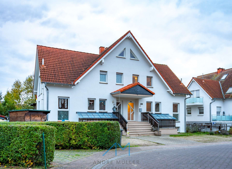 Diese charmante Doppelhaushälfte mit Einliegerwohnung besticht durch eine Aussicht von der höher gelegenen Terrasse, die einen herrlichen Blick ins Grüne bieten – ideal zum Entspannen und Träumen.