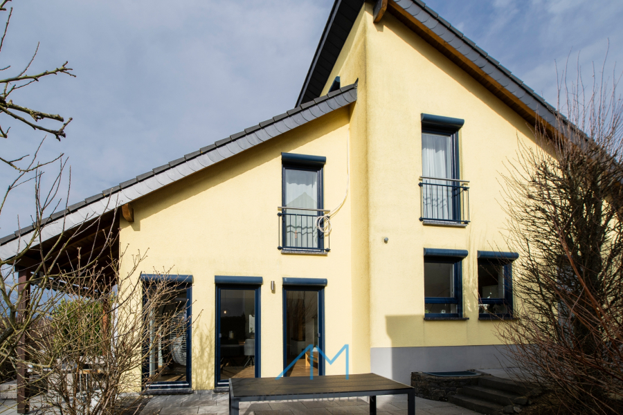 Inmitten malerischer Natur in Holzbach vereint dieses freistehende Haus modernen Wohnkomfort mit zeitloser Eleganz. Auf ca. 180 m² Wohnfläche und einem 780 m² großen Grundstück genießen Sie Geborgenheit und Stil. Hochwertige Bauweise mit 36 cm starken Mauern, gedämmter Dachkonstruktion, Fußbodenheizung und elektrischen Rollläden sorgen für höchsten Wohnkomfort. Der unverbaubare Weitblick und die stilvolle Außenanlage mit Natursteinmauern verleihen dem Haus ein besonderes Flair.