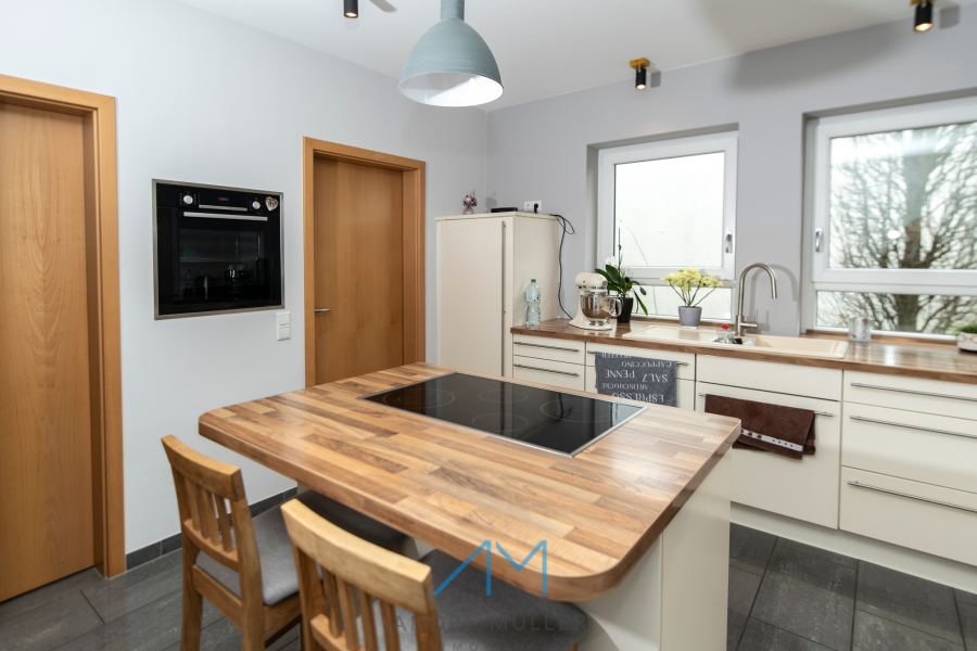 Betreten Sie Ihr neues Heim und lassen Sie sich von der warmen Atmosphäre empfangen. Großzügige Fensterfronten schaffen eine harmonische Verbindung zwischen Innen- und Außenbereich. Im Erdgeschoss erwartet Sie ein einladender Wohnbereich mit Kamin – ideal für entspannte Abende. Die offene, hochwertig ausgestattete Küche wird zum Mittelpunkt des Familienlebens und führt direkt auf zwei liebevoll gestaltete Terrassen – perfekt für laue Sommerabende und gesellige Grillrunden.