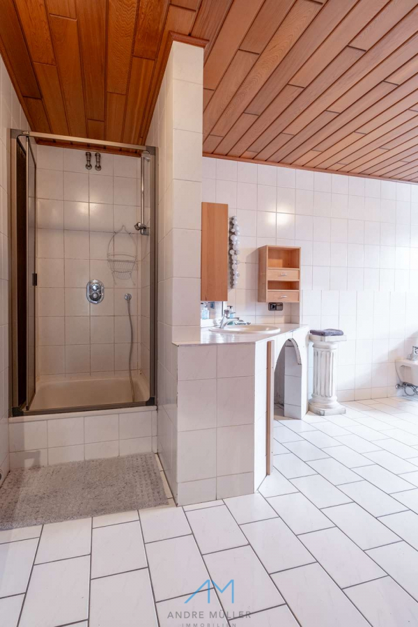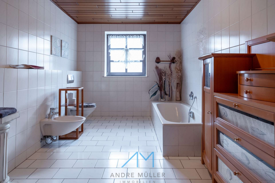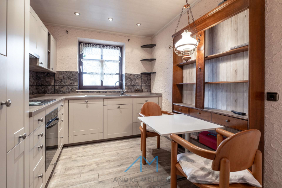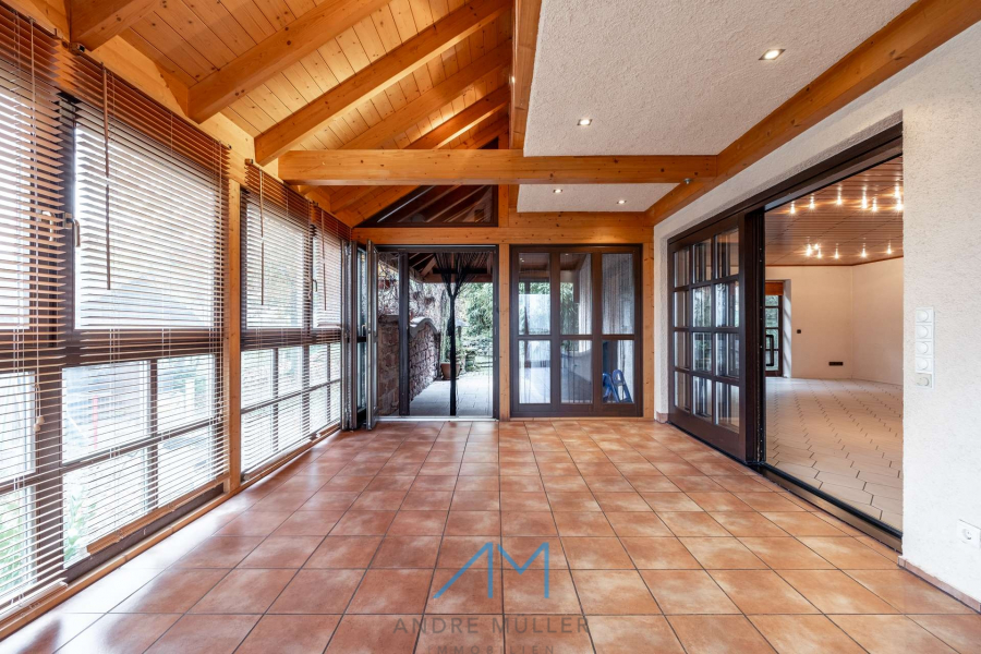 Dieses großzügige, massiv gebaute Haus wurde 1987 errichtet und seitdem kontinuierlich gepflegt und modernisiert, sodass es heute eine perfekte Kombination aus klassischem Charme und moderner Funktionalität bietet. Auf einer Wohnfläche von ca. 243 m² erstrecken sich sechs Zimmer. Im Erdgeschoss finden Sie eine Fußbodenheizung, die auch an kalten Tagen für wohlige Wärme sorgt. Die zwei großen Bäder und die zusätzlichen Gäste-Bäder bieten Komfort für alle Bewohner und Gäste. Besonders praktisch: Die beiden Hauptbäder lassen sich durch eine geschickte Modernisierung verkleinern, wodurch ein weiteres Zimmer mit etwa 13 m² entstehen könnte – ideal für ein Homeoffice, Gästezimmer oder Hobbyraum. Ein Highlight des Hauses ist der Wintergarten aus dem Jahr 2002, der das ganze Jahr über als lichtdurchfluteter Rückzugsort dient. Der Kamin mit Heißwassererwärmung sorgt nicht nur für Gemütlichkeit, sondern auch für effiziente Wärme.