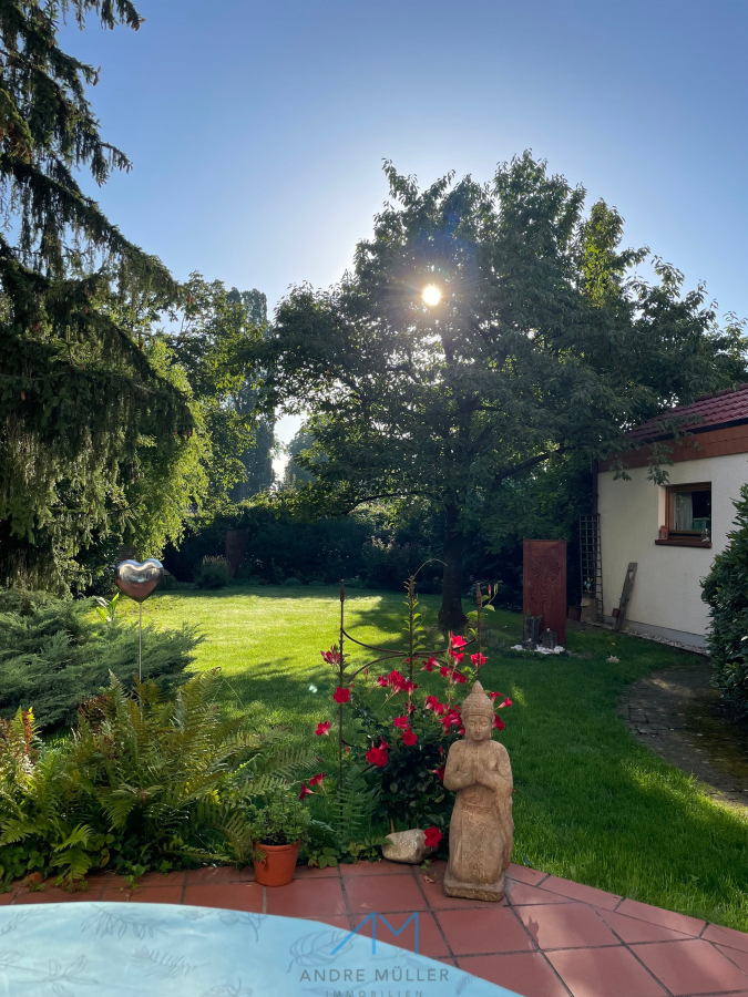 Der parkähnliche Garten ist eine grüne Oase – mit alten Bäumen, gepflegten Beeten und einer Terrasse, die zu entspannten Nachmittagen oder lebendigen Abenden unter freiem Himmel einlädt. Hier erleben Sie Natur, Ruhe und Lebensqualität.