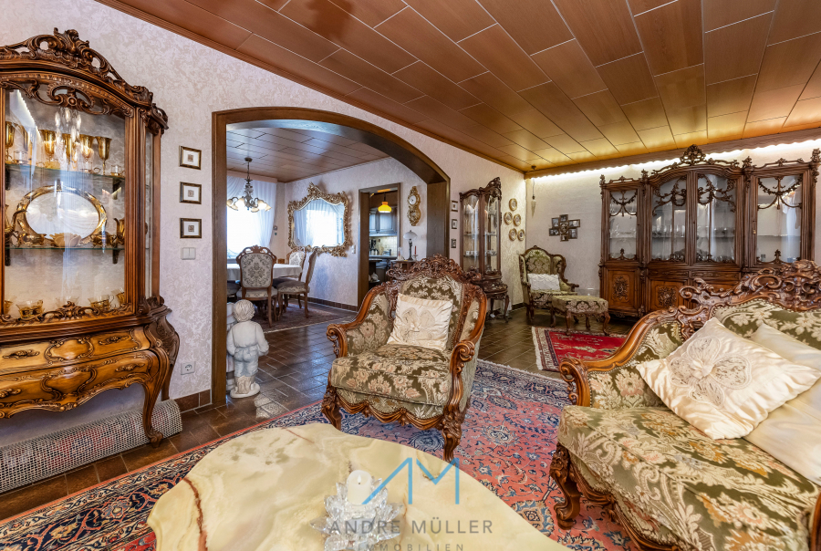 Auf einem beeindruckenden Grundstück von 926 m² entfaltet sich eine Wohnwelt, die zum Ankommen, Durchatmen und Bleiben einlädt. Der offene Wohn- und Essbereich mit seiner gemütlichen Kamin-Sitzecke bildet das Herzstück des Hauses. Große Fenster holen das Grün des Gartens ins Haus und schaffen eine lichtdurchflutete, entspannte Atmosphäre. Hier ist Platz für gemeinsame Stunden, stille Momente und besondere Erinnerungen.