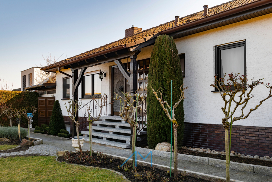 Am ruhigen Feldrand von Saulheim gelegen, empfängt Sie dieser liebevoll gepflegte Bungalow mit einer seltenen Kombination aus Großzügigkeit, Privatsphäre und Naturverbundenheit. Bereits beim Betreten spüren Sie: Dies ist kein gewöhnliches Haus – es ist ein Zuhause mit Seele.