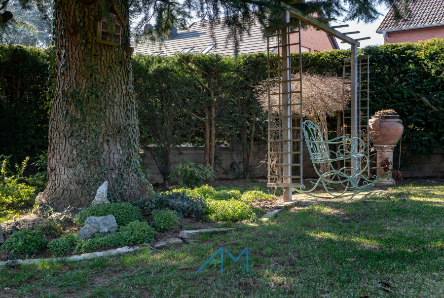 Die weitläufige Terrasse öffnet sich zum traumhaft angelegten Garten, der mit seinem dichten Sichtschutz, altem Baumbestand und unverbautem Blick in die Natur einen Rückzugsort schafft, den man selten findet. Ein Ort, an dem Kinder toben, Freunde feiern und man selbst einfach nur die Stille genießen kann.
