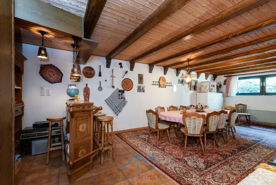 Ein weiterer Schatz verbirgt sich im Untergeschoss: Der teilweise beheizte Keller mit Gästezimmer, Dusch-WC, großem Partyraum und viel Stauraum bietet nicht nur Flexibilität, sondern auch Raum für Ideen. Sogar eine Einliegerwohnung in der Doppelgarage ist denkbar.