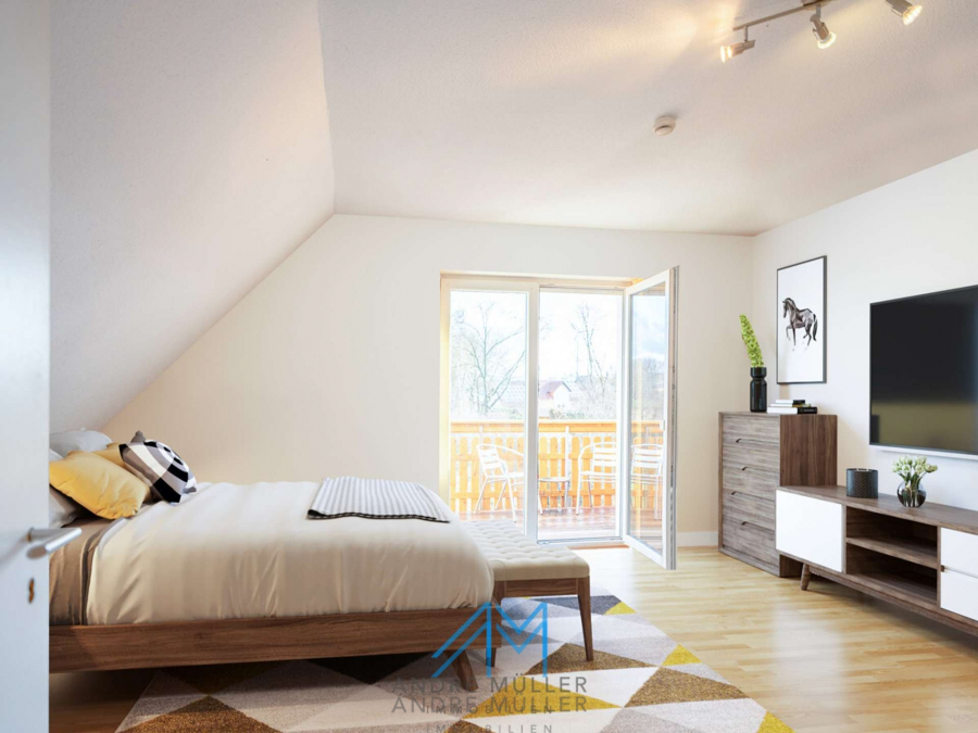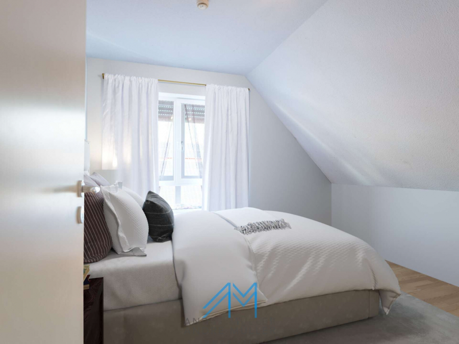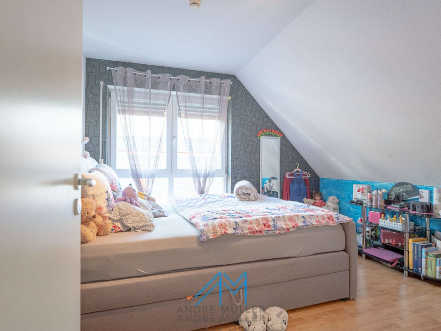 Die Einliegerwohnung im Untergeschoss verfügt über einen separaten Eingang, was sie ideal für Vermietungen oder als ruhigen Rückzugsort für Gäste oder Familienmitglieder macht. Die Hauptwohnung verteilt sich auf das Erdgeschoss mit einem großzügigen Wohn- und Essbereich, inklusive eines einladenden Kamins der an kühlen Abenden für Gemütlichkeit sorgt. Das obere Geschoss offenbart ein geräumiges Badezimmer, ein behagliches Schlafzimmer mit Balkon und zwei einladende Kinderzimmer – ein idyllisches Setting für das Familienleben. Eine kleine Treppe führt zum ausgebauten Dachboden, der zusätzlichen Raum für Kreativität und Entspannung bietet.