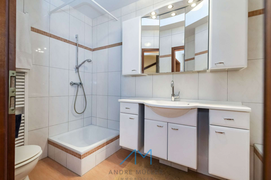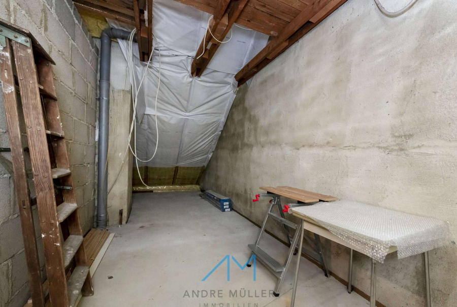 Fünf Zimmer, ein sonniger Garten, zwei Stellplätze, eine Garage und ein eigener Pool: Dieses Haus überrascht mit mehr Möglichkeiten, als man auf den ersten Blick vermutet. Und es denkt an Ihre Zukunft – das bereits vorbereitete Dachgeschoss lässt sich im Handumdrehen in zusätzlichen Wohnraum von ca. 30 m² verwandeln. Ein Studio, ein Gästezimmer, ein Atelier mit Bad? Alles ist möglich.